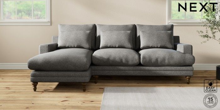7.0.3 Buy Hutton Deep Relaxed Sit Medium Sofa Chaise - Left Hand Tweedy Blend Easy Clean Dark Grey Country Turned - Mid from the Next UK online shop Click here to use our accessible website