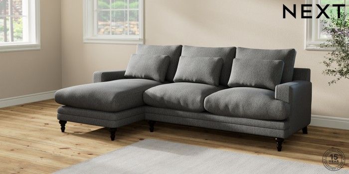 6.12.1 Buy Hutton Deep Relaxed Sit Medium Sofa Chaise - Left Hand Tweedy Chenille Dark Grey Country Turned - Dark from the Next UK online shop Click here to use our accessible website