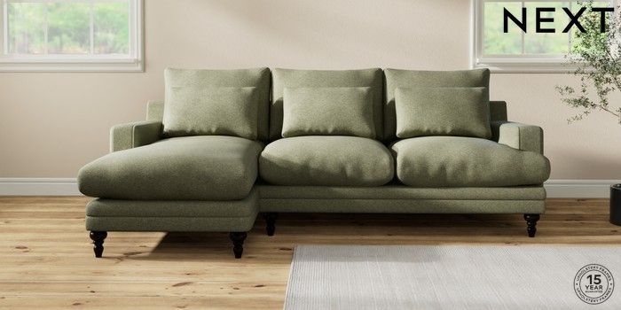 7.0.3 Buy Hutton Deep Relaxed Sit Medium Sofa Chaise - Left Hand Tweedy Chenille Mid Moss Green Country Turned - Dark from the Next UK online shop Click here to use our accessible website