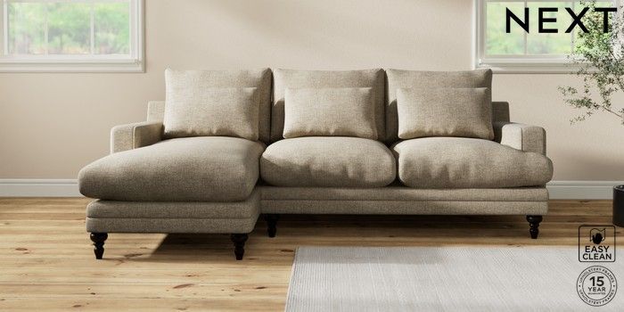7.0.3 Buy Hutton Deep Relaxed Sit Medium Sofa Chaise - Left Hand Woven Chenille Easy Clean Mid Natural Country Turned - Dark from the Next UK online shop Click here to use our accessible website