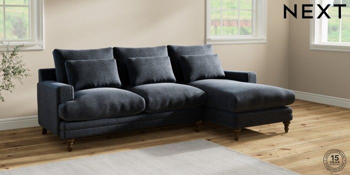6.12.1 Buy Hutton Deep Relaxed Sit Medium Sofa Chaise - Right Hand Boucle Chenille Dark Slate Blue Country Turned - Mid from the Next UK online shop Click here to use our accessible website