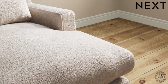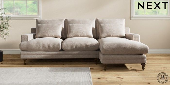 7.0.3 Buy Hutton Deep Relaxed Sit Medium Sofa Chaise - Right Hand Boucle Chenille Light Natural Country Turned - Mid from the Next UK online shop Click here to use our accessible website