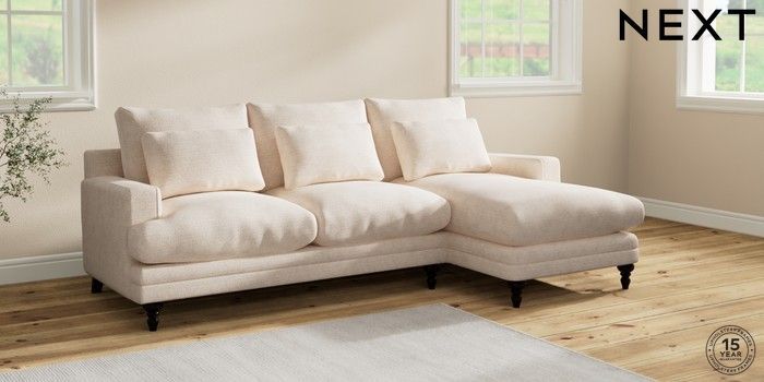 6.12.1 Buy Hutton Deep Relaxed Sit Medium Sofa Chaise - Right Hand Boucle Chenille Oyster Country Turned - Dark from the Next UK online shop Click here to use our accessible website