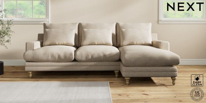 7.0.3 Buy Hutton Deep Relaxed Sit Medium Sofa Chaise - Right Hand Boucle Weave Easy Clean Dark Natural Country Turned - Light from the Next UK online shop Click here to use our accessible website