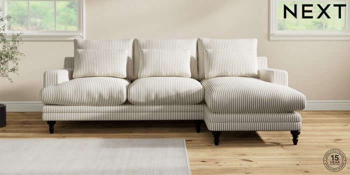 7.0.3 Buy Hutton Deep Relaxed Sit Medium Sofa Chaise - Right Hand Chenille Stripe Moss Green Country Turned - Dark from the Next UK online shop Click here to use our accessible website