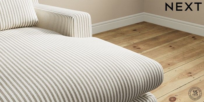 7.0.3 Buy Hutton Deep Relaxed Sit Medium Sofa Chaise - Right Hand Chenille Stripe Moss Green Country Turned - Mid from the Next UK online shop Click here to use our accessible website