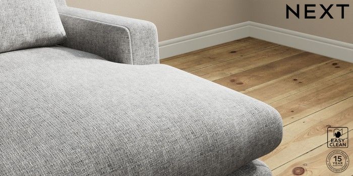 7.0.3 Buy Hutton Deep Relaxed Sit Medium Sofa Chaise - Right Hand Chunky Boucle Easy Clean Light Grey Country Turned - Mid from the Next UK online shop Click here to use our accessible website