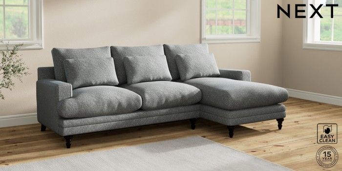 6.12.1 Buy Hutton Deep Relaxed Sit Medium Sofa Chaise - Right Hand Chunky Boucle Easy Clean Mid Grey Country Turned - Dark from the Next UK online shop Click here to use our accessible website