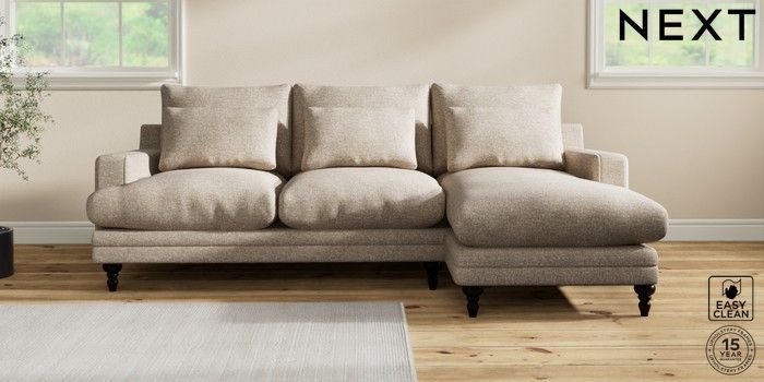 7.0.3 Buy Hutton Deep Relaxed Sit Medium Sofa Chaise - Right Hand Chunky Boucle Easy Clean Mid Natural Country Turned - Dark from the Next UK online shop Click here to use our accessible website