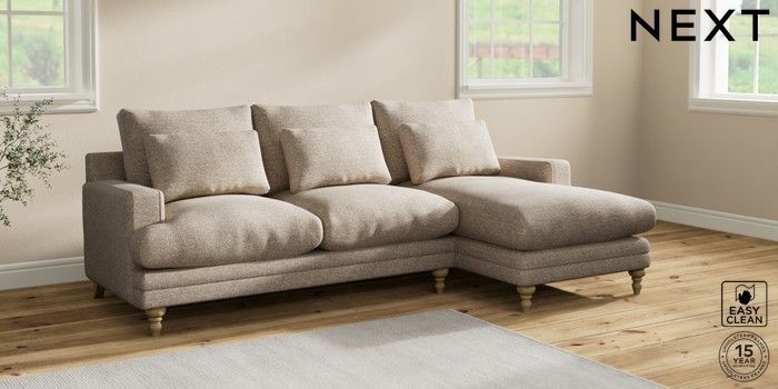 6.12.1 Buy Hutton Deep Relaxed Sit Medium Sofa Chaise - Right Hand Chunky Boucle Easy Clean Mid Natural Country Turned - Light from the Next UK online shop Click here to use our accessible website