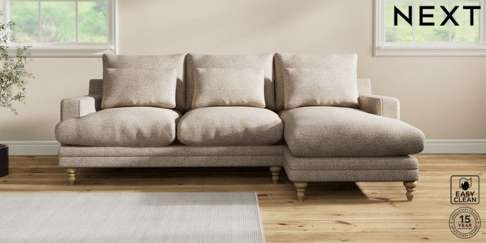 7.0.3 Buy Hutton Deep Relaxed Sit Medium Sofa Chaise - Right Hand Chunky Boucle Easy Clean Mid Natural Country Turned - Light from the Next UK online shop Click here to use our accessible website