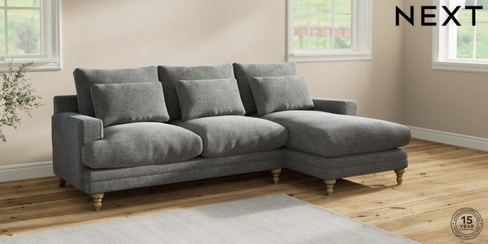 6.12.1 Buy Hutton Deep Relaxed Sit Medium Sofa Chaise - Right Hand Chunky Chenille Dark Grey Country Turned - Light from the Next UK online shop Click here to use our accessible website