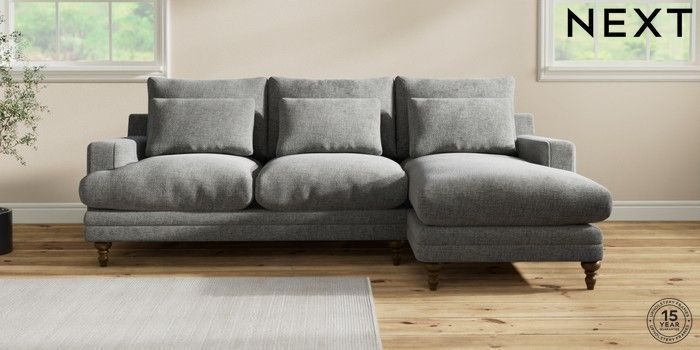 7.0.3 Buy Hutton Deep Relaxed Sit Medium Sofa Chaise - Right Hand Chunky Chenille Dark Grey Country Turned - Mid from the Next UK online shop Click here to use our accessible website