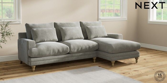 6.12.1 Buy Hutton Deep Relaxed Sit Medium Sofa Chaise - Right Hand Chunky Chenille Light Grey Country Turned - Light from the Next UK online shop Click here to use our accessible website