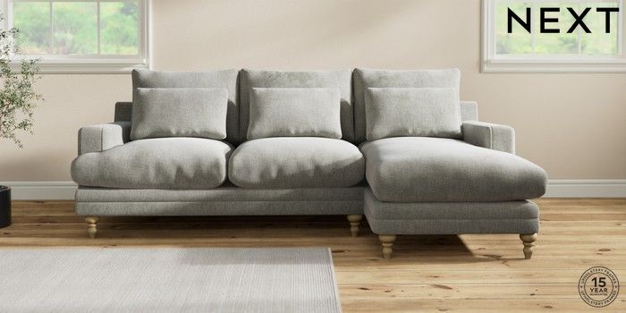 7.0.3 Buy Hutton Deep Relaxed Sit Medium Sofa Chaise - Right Hand Chunky Chenille Light Grey Country Turned - Light from the Next UK online shop Click here to use our accessible website