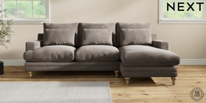 7.0.3 Buy Hutton Deep Relaxed Sit Medium Sofa Chaise - Right Hand Chunky Chenille Mink Brown Country Turned - Light from the Next UK online shop Click here to use our accessible website
