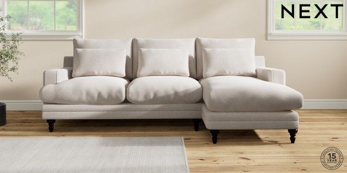 7.0.3 Buy Hutton Deep Relaxed Sit Medium Sofa Chaise - Right Hand Chunky Chenille Oyster Country Turned - Dark from the Next UK online shop Click here to use our accessible website