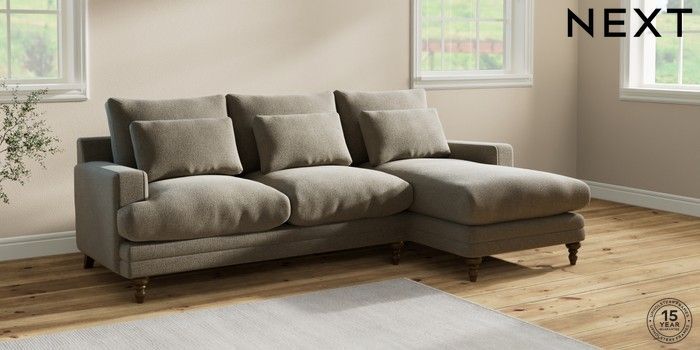 6.12.1 Buy Hutton Deep Relaxed Sit Medium Sofa Chaise - Right Hand Chunky Marl Light Olive Green Country Turned - Mid from the Next UK online shop Click here to use our accessible website
