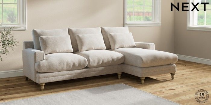6.12.1 Buy Hutton Deep Relaxed Sit Medium Sofa Chaise - Right Hand Chunky Marl Oyster Country Turned - Light from the Next UK online shop Click here to use our accessible website