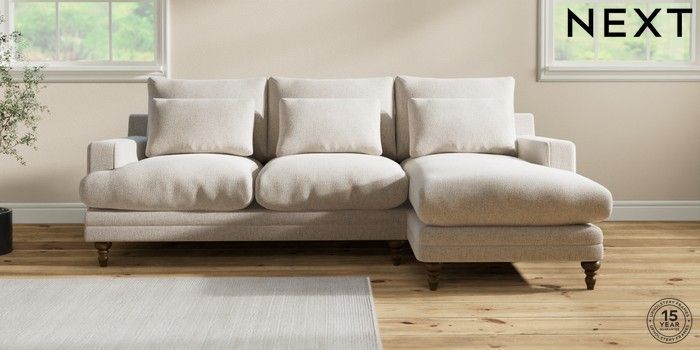 7.0.3 Buy Hutton Deep Relaxed Sit Medium Sofa Chaise - Right Hand Chunky Marl Oyster Country Turned - Mid from the Next UK online shop Click here to use our accessible website