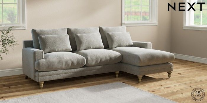 6.12.1 Buy Hutton Deep Relaxed Sit Medium Sofa Chaise - Right Hand Chunky Texture Dove Country Turned - Light from the Next UK online shop Click here to use our accessible website