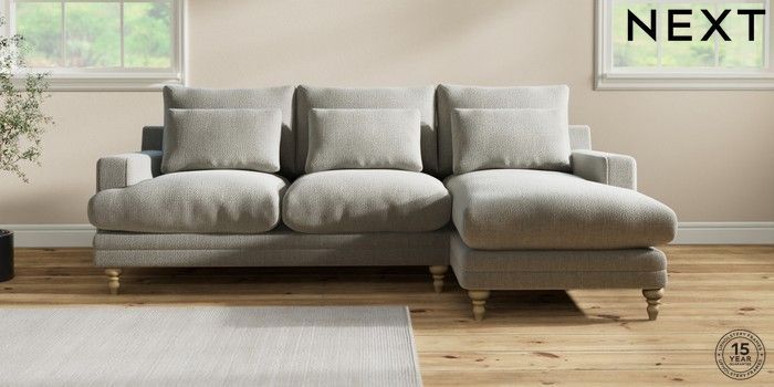 7.0.3 Buy Hutton Deep Relaxed Sit Medium Sofa Chaise - Right Hand Chunky Texture Dove Country Turned - Light from the Next UK online shop Click here to use our accessible website