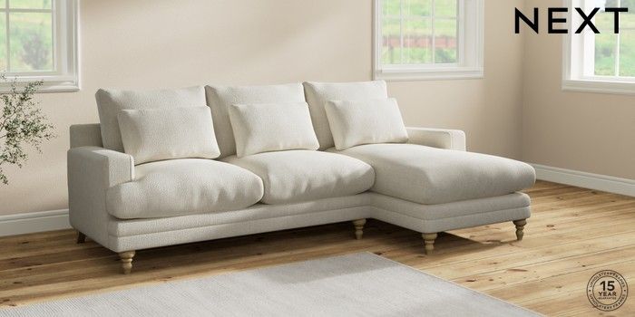 6.12.1 Buy Hutton Deep Relaxed Sit Medium Sofa Chaise - Right Hand Chunky Texture Oyster Country Turned - Light from the Next UK online shop Click here to use our accessible website
