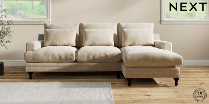 7.0.3 Buy Hutton Deep Relaxed Sit Medium Sofa Chaise - Right Hand Chunky Weave Cream Country Turned - Dark from the Next UK online shop Click here to use our accessible website