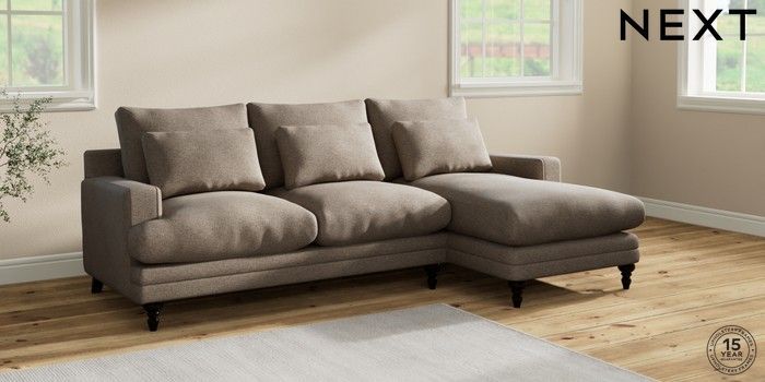 6.12.1 Buy Hutton Deep Relaxed Sit Medium Sofa Chaise - Right Hand Chunky Weave Dark Natural Country Turned - Dark from the Next UK online shop Click here to use our accessible website