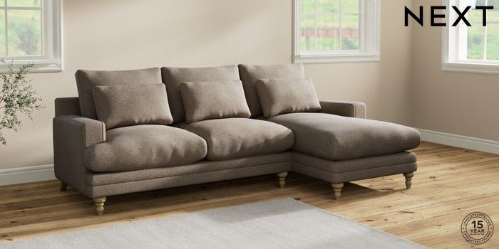6.12.1 Buy Hutton Deep Relaxed Sit Medium Sofa Chaise - Right Hand Chunky Weave Dark Natural Country Turned - Light from the Next UK online shop Click here to use our accessible website