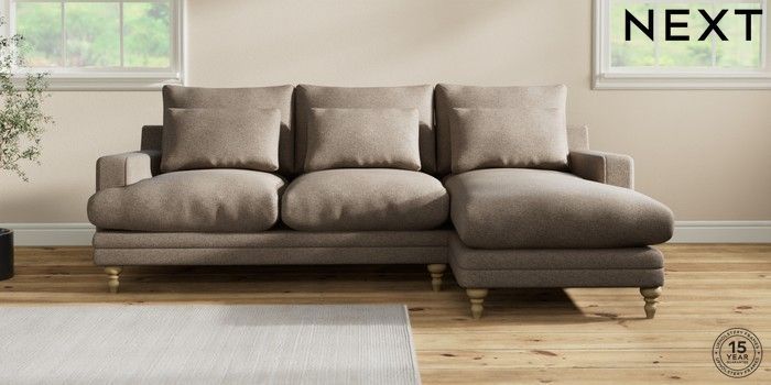 7.0.3 Buy Hutton Deep Relaxed Sit Medium Sofa Chaise - Right Hand Chunky Weave Dark Natural Country Turned - Light from the Next UK online shop Click here to use our accessible website