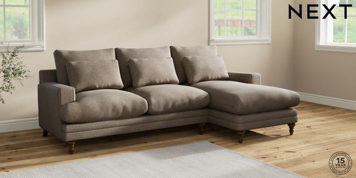6.12.1 Buy Hutton Deep Relaxed Sit Medium Sofa Chaise - Right Hand Chunky Weave Dark Natural Country Turned - Mid from the Next UK online shop Click here to use our accessible website