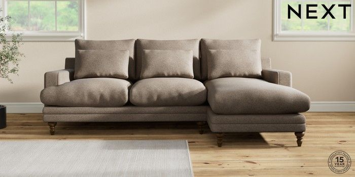 7.0.3 Buy Hutton Deep Relaxed Sit Medium Sofa Chaise - Right Hand Chunky Weave Dark Natural Country Turned - Mid from the Next UK online shop Click here to use our accessible website