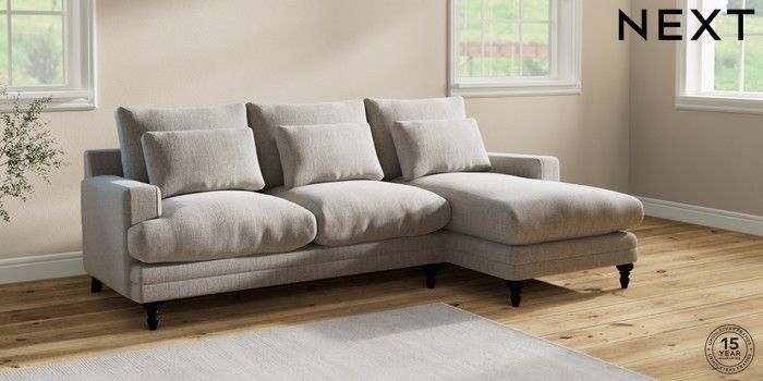 6.12.1 Buy Hutton Deep Relaxed Sit Medium Sofa Chaise - Right Hand Chunky Weave Dove Grey Country Turned - Dark from the Next UK online shop Click here to use our accessible website