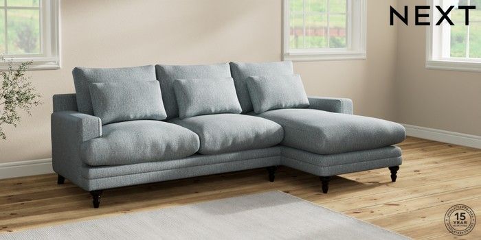 6.12.1 Buy Hutton Deep Relaxed Sit Medium Sofa Chaise - Right Hand Chunky Weave Mid Blue Country Turned - Dark from the Next UK online shop Click here to use our accessible website