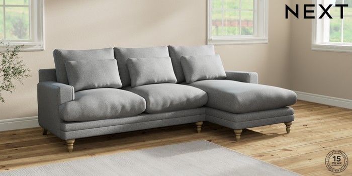 6.12.1 Buy Hutton Deep Relaxed Sit Medium Sofa Chaise - Right Hand Chunky Weave Mid Grey Country Turned - Light from the Next UK online shop Click here to use our accessible website