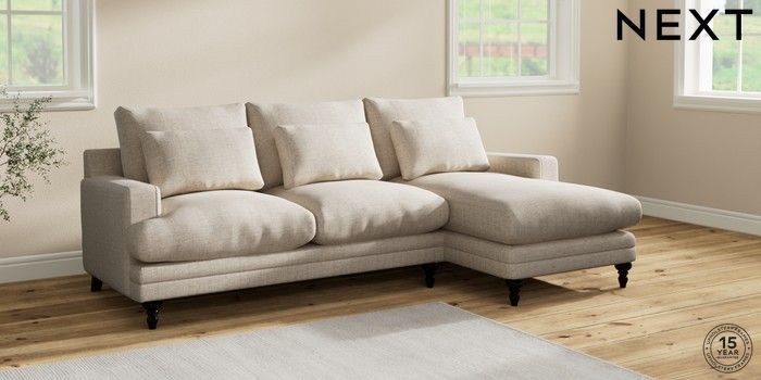 6.12.1 Buy Hutton Deep Relaxed Sit Medium Sofa Chaise - Right Hand Chunky Weave Mid Natural Country Turned - Dark from the Next UK online shop Click here to use our accessible website