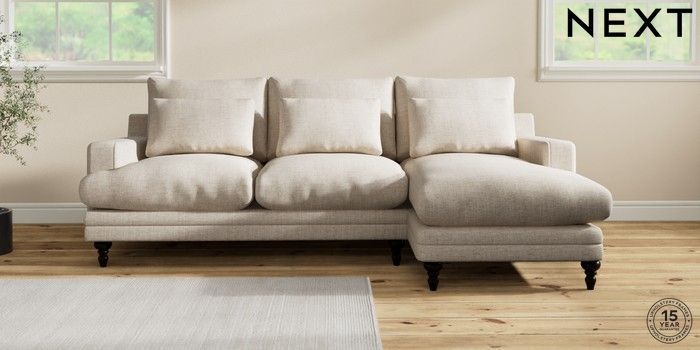 7.0.3 Buy Hutton Deep Relaxed Sit Medium Sofa Chaise - Right Hand Chunky Weave Mid Natural Country Turned - Dark from the Next UK online shop Click here to use our accessible website