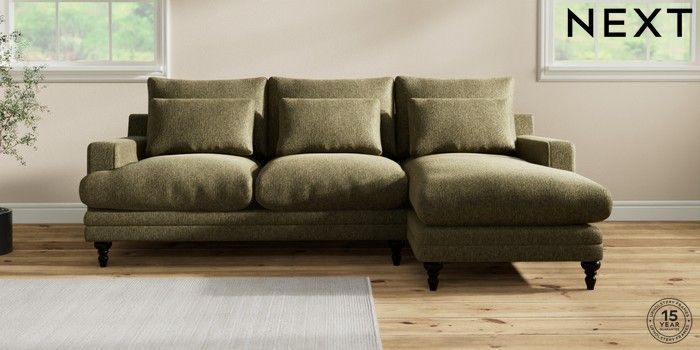 7.0.3 Buy Hutton Deep Relaxed Sit Medium Sofa Chaise - Right Hand Cotswold Chenille Dark Green Country Turned - Dark from the Next UK online shop Click here to use our accessible website