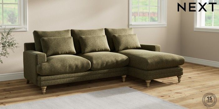 6.12.1 Buy Hutton Deep Relaxed Sit Medium Sofa Chaise - Right Hand Cotswold Chenille Dark Green Country Turned - Light from the Next UK online shop Click here to use our accessible website