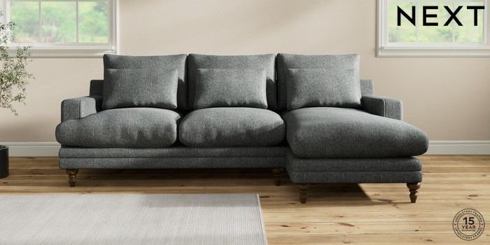7.0.3 Buy Hutton Deep Relaxed Sit Medium Sofa Chaise - Right Hand Cotswold Chenille Dark Grey Country Turned - Mid from the Next UK online shop Click here to use our accessible website