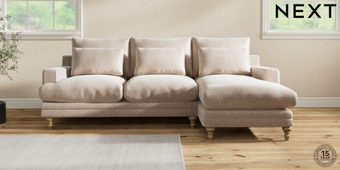 7.0.3 Buy Hutton Deep Relaxed Sit Medium Sofa Chaise - Right Hand Cotswold Chenille Light Natural Country Turned - Light from the Next UK online shop Click here to use our accessible website