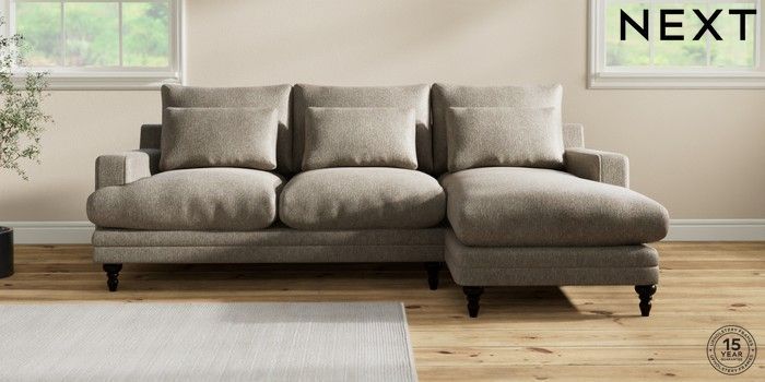 7.0.3 Buy Hutton Deep Relaxed Sit Medium Sofa Chaise - Right Hand Cotswold Chenille Mid Mink Brown Country Turned - Dark from the Next UK online shop Click here to use our accessible website