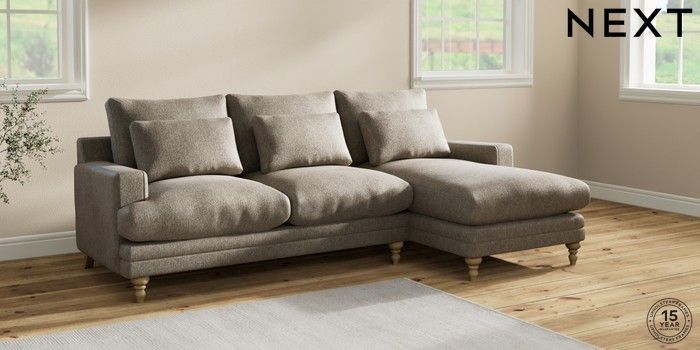 6.12.1 Buy Hutton Deep Relaxed Sit Medium Sofa Chaise - Right Hand Cotswold Chenille Mid Mink Brown Country Turned - Light from the Next UK online shop Click here to use our accessible website