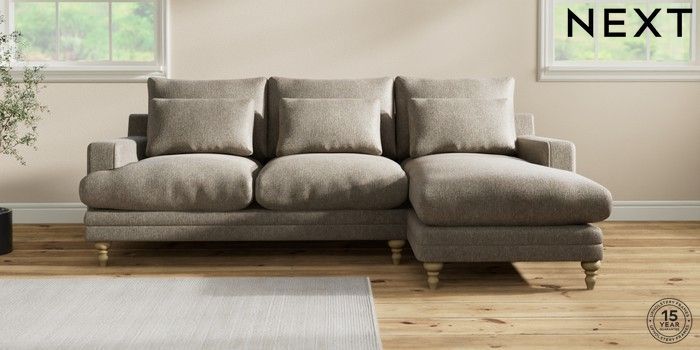 7.0.3 Buy Hutton Deep Relaxed Sit Medium Sofa Chaise - Right Hand Cotswold Chenille Mid Mink Brown Country Turned - Light from the Next UK online shop Click here to use our accessible website