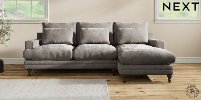 7.0.3 Buy Hutton Deep Relaxed Sit Medium Sofa Chaise - Right Hand Distressed Velour French Grey Country Turned - Mid from the Next UK online shop Click here to use our accessible website