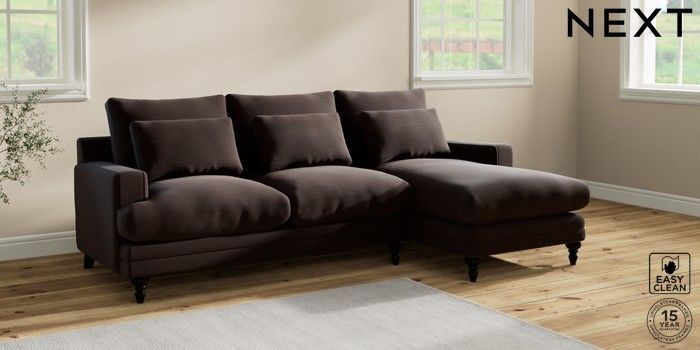 6.12.1 Buy Hutton Deep Relaxed Sit Medium Sofa Chaise - Right Hand Fine Chenille Easy Clean Chocolate Brown Country Turned - Dark from the Next UK online shop Click here to use our accessible website