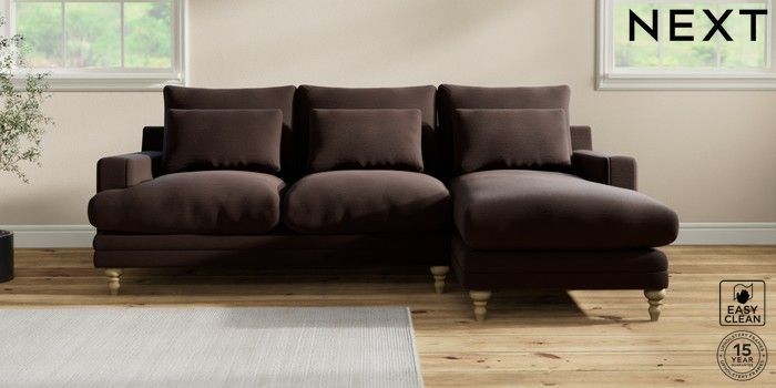 7.0.3 Buy Hutton Deep Relaxed Sit Medium Sofa Chaise - Right Hand Fine Chenille Easy Clean Chocolate Brown Country Turned - Light from the Next UK online shop Click here to use our accessible website