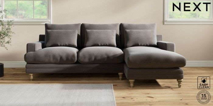 7.0.3 Buy Hutton Deep Relaxed Sit Medium Sofa Chaise - Right Hand Fine Chenille Easy Clean Dark Smoke Grey Country Turned - Light from the Next UK online shop Click here to use our accessible website