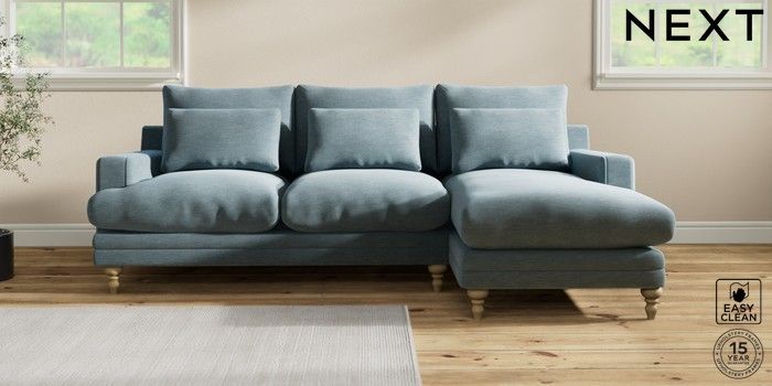 7.0.3 Buy Hutton Deep Relaxed Sit Medium Sofa Chaise - Right Hand Fine Chenille Easy Clean Mid Blue Country Turned - Light from the Next UK online shop Click here to use our accessible website